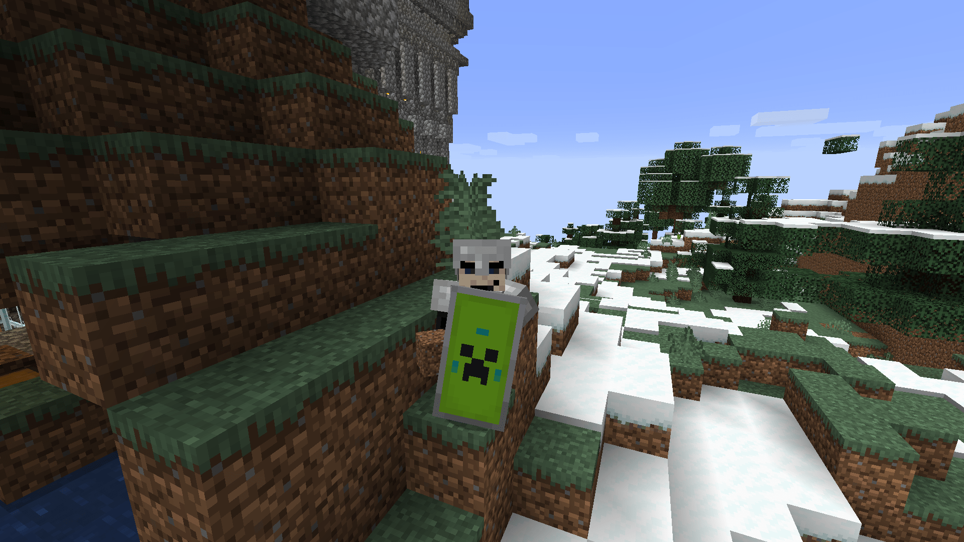 Обход новой территории с моим “крипер” щитом.