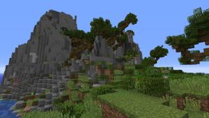 Слегка мозолят глаза полублоки песчанника в пустыне, поверх песка, но полублоков из песка для сглаживания углов не будет. 🙂 Можно было бы добавить, вот в таких ситуациях смешения биомов, отдельные блоки булыжника/замшелого булыжника, лежащие на поверхности земли/травы и зарывшихся в неё в самый верхний слой. Было б совсем жизненно.